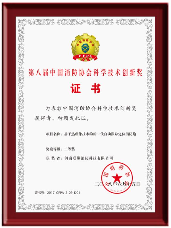 河南聯(lián)縱消防科技有限公司位于鄭州市高新區(qū)電子電器產(chǎn)業(yè)園,擁有專家團隊和標(biāo)準(zhǔn)化工業(yè)廠房和實驗場,是一家以大空間智能消防水炮為主導(dǎo)的集科研、開發(fā)、生產(chǎn)、銷售、服務(wù)于一體的高科技消防設(shè)備制造企業(yè)。 公司以“極致產(chǎn)品安天下”為宗旨,針對市場上普通消防水炮精準(zhǔn)度差、易誤噴、不能實時追蹤動態(tài)火源、適用場所受限等缺陷,歷時6年,成功研發(fā)出了第II代自動跟蹤定位射流滅火裝置系列產(chǎn)品。公司已通過了IS09001:208、IS014001:2004、OHSAS18001:2007、GB/T29490-2013等體系認(rèn)證,獲得專利授權(quán)三十多項,取得國家級高新技術(shù)企業(yè)、消防行業(yè)誠信示范單位、消防科技創(chuàng)新企業(yè)、第八屆中國消防協(xié)會科學(xué)技術(shù)創(chuàng)新獎,產(chǎn)品通過國家消防裝備質(zhì)量監(jiān)督檢驗中心檢驗,并獲得了公安部消防產(chǎn)品合格評定中心頒發(fā)的消防產(chǎn)品認(rèn)證證書。 第II代自動跟蹤定位射流滅火裝置采用熱成像+捷聯(lián)制導(dǎo)技術(shù),集自動報警、動火追蹤、自動滅火、視頻監(jiān)控四位一體,具有可靠性高、精準(zhǔn)度好、性能穩(wěn)定、安裝操作方便、智能化程度高、應(yīng)用環(huán)境廣泛等特點。公司產(chǎn)品自上市以來,已經(jīng)有數(shù)萬臺產(chǎn)品被安裝在了數(shù)千個工程項目中,先后參加了幾十次國內(nèi)外消防展,贏得了各界人士的一直好評,被央視《我愛發(fā)明》欄目發(fā)現(xiàn)后,央視編導(dǎo)組對產(chǎn)品性能進行了數(shù)十天的實驗和拍攝,先后在以下節(jié)目播出: CCTV-10《我愛發(fā)明》之“烈火哨兵”、CCTV-10《實驗現(xiàn)場》之“滅火試驗”、CCTV發(fā)現(xiàn)之旅《品質(zhì)》之“智慧消防 守護一生”、 CCTV-17新改版《我愛發(fā)明》之“智能水炮”...